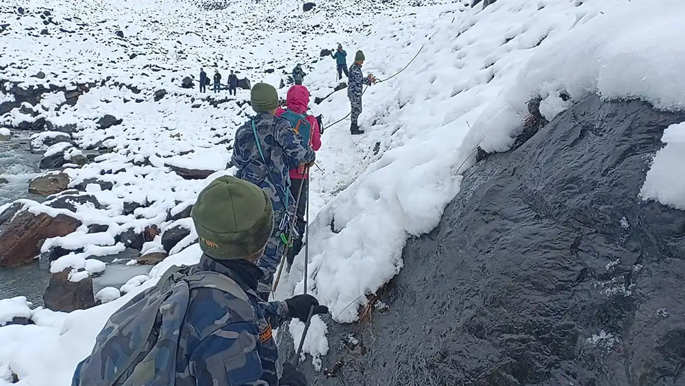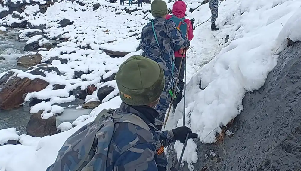 मनाङ । उच्च हिमपात र अविरल वर्षाका कारण पाँच दिनदेखि तिलिचो बेस क्याम्पमा फसेका ११ जना आन्तरिक पर्यटकहरूलाई सशस्त्र प्रहरी बलको माउण्टेन रेस्क्यु ट्रेनिङ्ग स्कूल (एमआरटीएस)बाट खटिएको माउन्टेन रेस्क्यू टिमले सफलतापूर्वक उद्धार गरेको छ ।