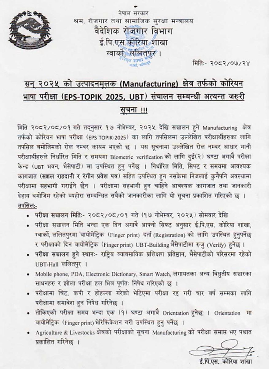 कोरियन भाषा परीक्षाको तालिका सार्वजनिक, शुरुमा उत्पादनमुलकको हुने
