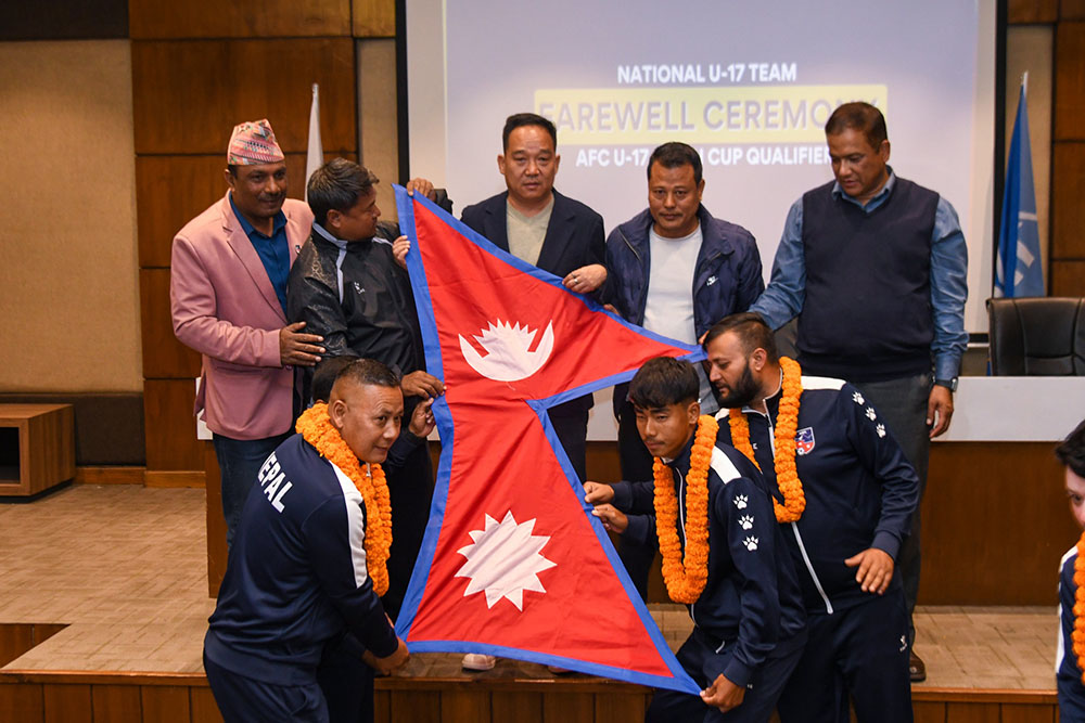 खेलाडीलाई एन्फाका महासचिव किरण राई, पूर्व सह-सदस्य विकास नारायण श्रेष्ठ र पुरुषोत्तम थापा, सीईओ इन्द्रमान तुलाधर र प्रवक्ता सुरेश शाहले सातदोबाटोस्थित एन्फा कम्प्लेक्समा टोलीलाई बिदाई गरेक हुन् ।